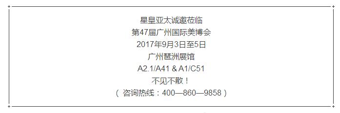 2017年9月3日,第47屆中國(廣州)國際美博會拉開帷幕。亮相美展的“TA”(星皇亞太),在萬千品牌中再次驚艷亮相,吸引了不少行業及顧客的目光,成為展會上頗具人氣、備受矚目的焦點。