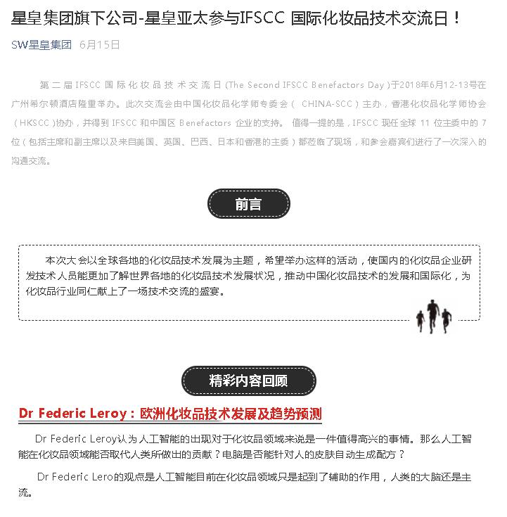 星皇集團旗下公司-星皇亞太參與IFSCC 國際化妝品技術(shù)交流日